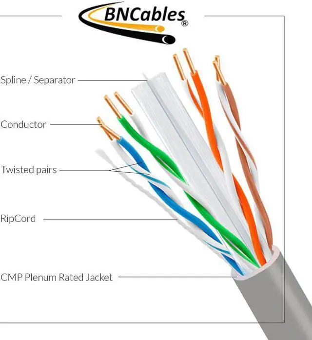 BNCables CAT6 Plenum (CMP) UTP (Unshielded Twisted Pair) networking cable has enhanced performance and high 550MHz bandwidth capacity, fire retardant, meets, exceeds TIA/EIA 568-C. 2 standards. Our CAT6 plenum cable comes in easy pull box packaging for smooth and easy installation, and is ideal for commercial and residential networking. 23 Awg copper clad aluminum conductor insulated with hdpe to stop extreme attacks Our CAT6 plenum (CMP) rated jacket Ethernet cable comes in multiple colors and is best for computers, printers, gaming consoles, routers, Ethernet extenders, switch boxes, VoIP phones, IP cameras.