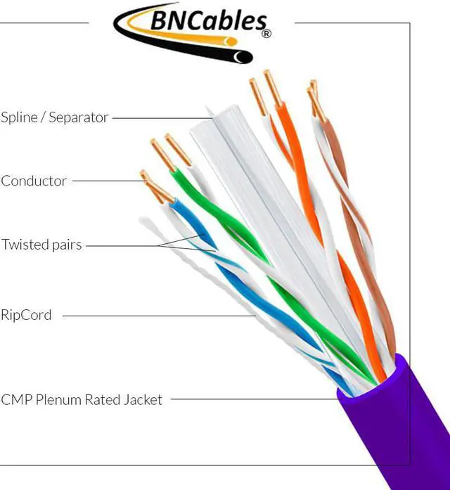 BNCables CAT6 Plenum (CMP) UTP (Unshielded Twisted Pair) networking cable has enhanced performance and high 550MHz bandwidth capacity, fire retardant, meets, exceeds TIA/EIA 568-C. 2 standards. Our CAT6 plenum cable comes in easy pull box packaging for smooth and easy installation, and is ideal for commercial and residential networking. 23 Awg copper clad aluminum conductor insulated with hdpe to stop extreme attacks Our CAT6 plenum (CMP) rated jacket Ethernet cable comes in multiple colors and is best for computers, printers, gaming consoles, routers, Ethernet extenders, switch boxes, VoIP phones, IP cameras.