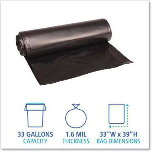 Low Density Repro Can Liners, 33 Gal, 1.6 Mil, 33" X 39", Black, 10 Bags/Roll, 10 Rolls/Carton