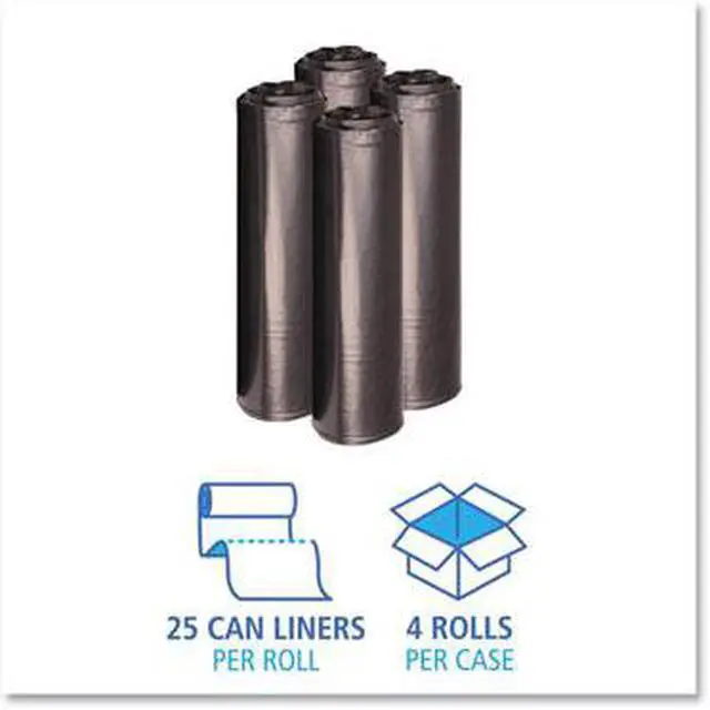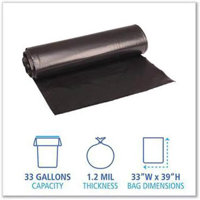 Low Density Repro Can Liners, 33 Gal, 1.2 Mil, 33" X 39", Black, 10 Bags/Roll, 10 Rolls/Carton