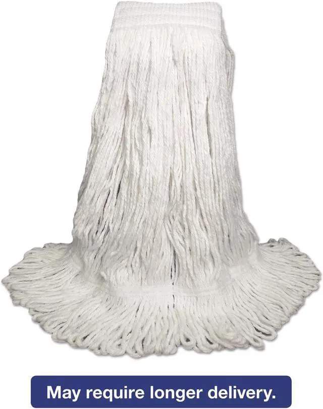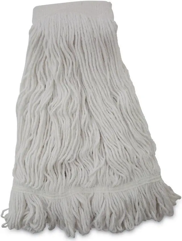 Boardwalk Saddleback Loop-End Wet Mop Heads are constructed from standard, four-ply, natural yarn for a quality mop head. The looped end design sheds less lint, reduces fraying and unraveling. The durable, double-sewn tailband prevents tangles and provides more floor coverage on a variety of floor types. The heavy-duty, five-inch, vinyl mesh headband securely holds full-weight, premium fiber strands. Designed for use with clamp-style or gripper-style mop handle, which is sold separately. Mop Head Type: Wet Mop; Application: Floor Maintenance; Mop Head Style: Looped End; Mop Head Size: 24 oz.