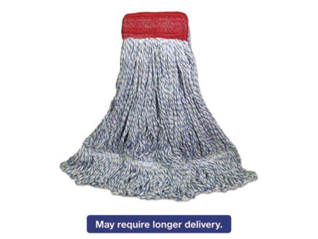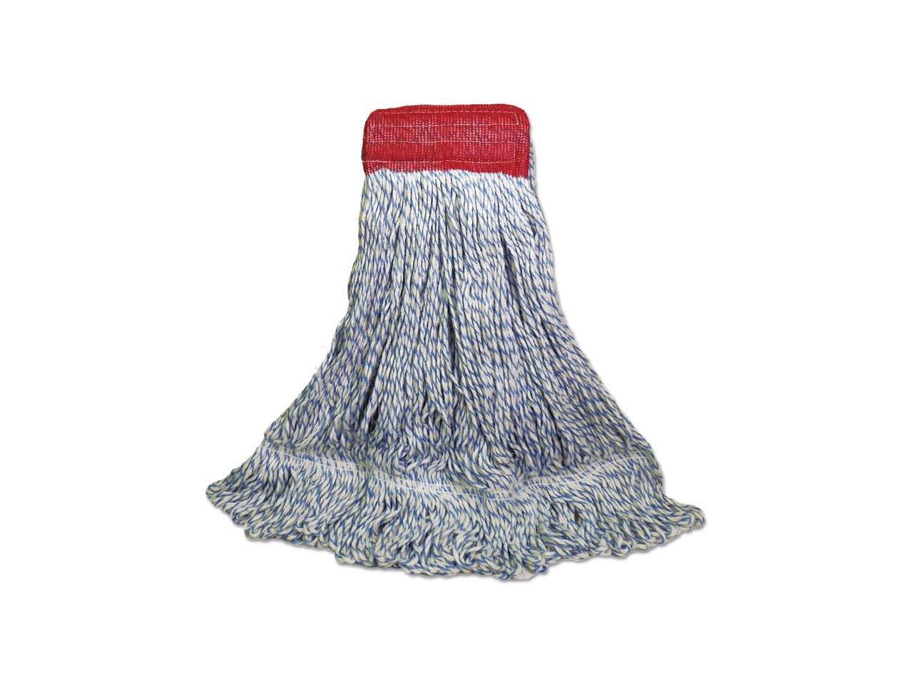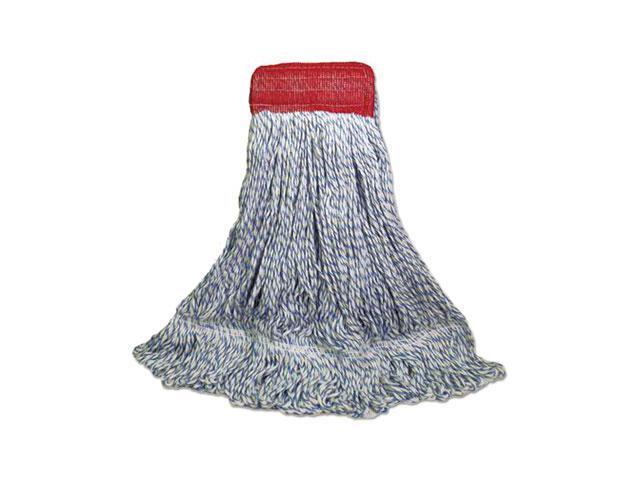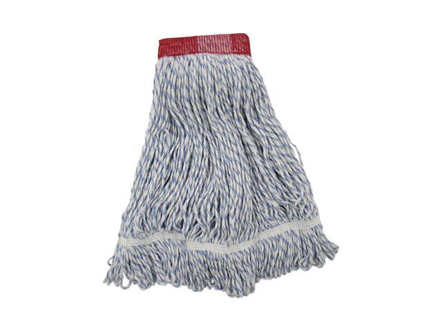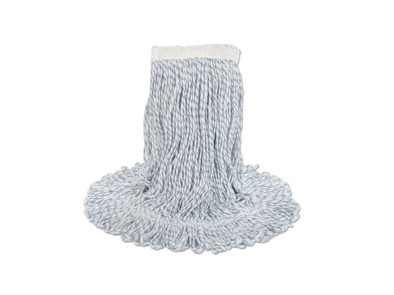 Mop Head, Floor Finish, Wide, Rayon/Polyester, Large, White/Blue, 12/Carton BWK553