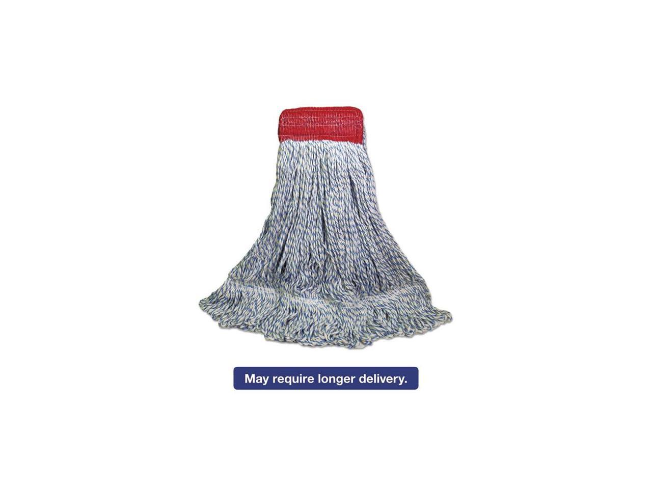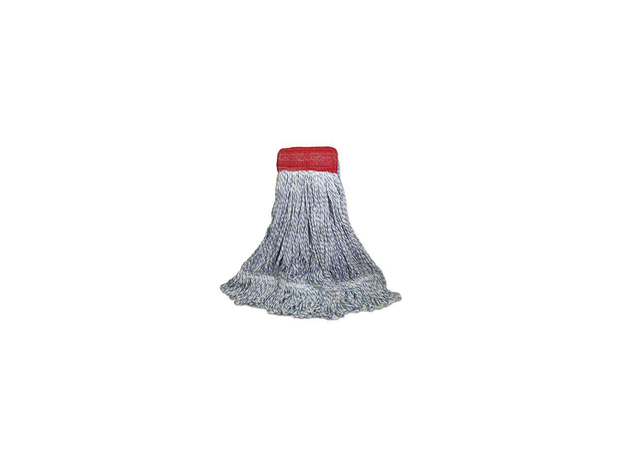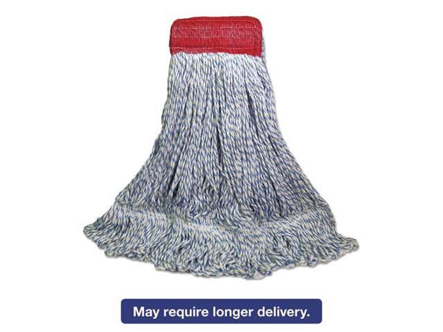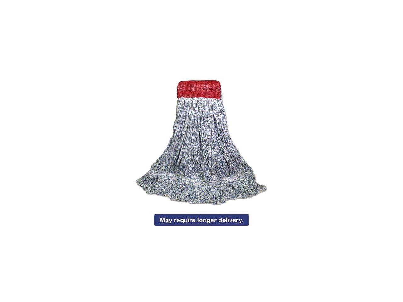Mop Head, Floor Finish, Wide, Rayon/Polyester, Large, White/Blue, 12/Carton BWK553