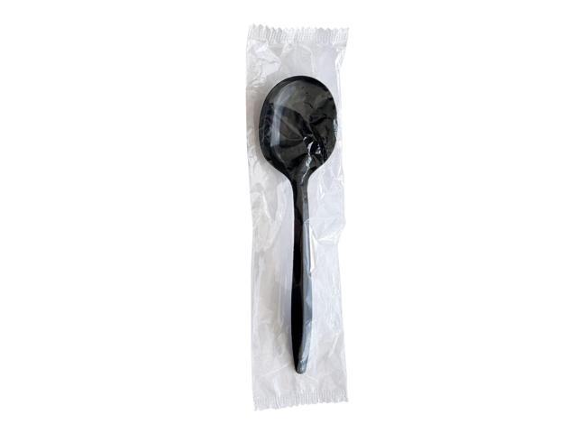 Mediumweight Wrapped Polypropylene Cutlery Soup Spoon Plastic Black 1000/Carton BWKSOUPBLPPIW