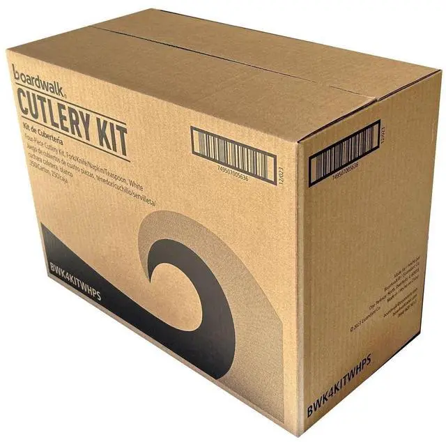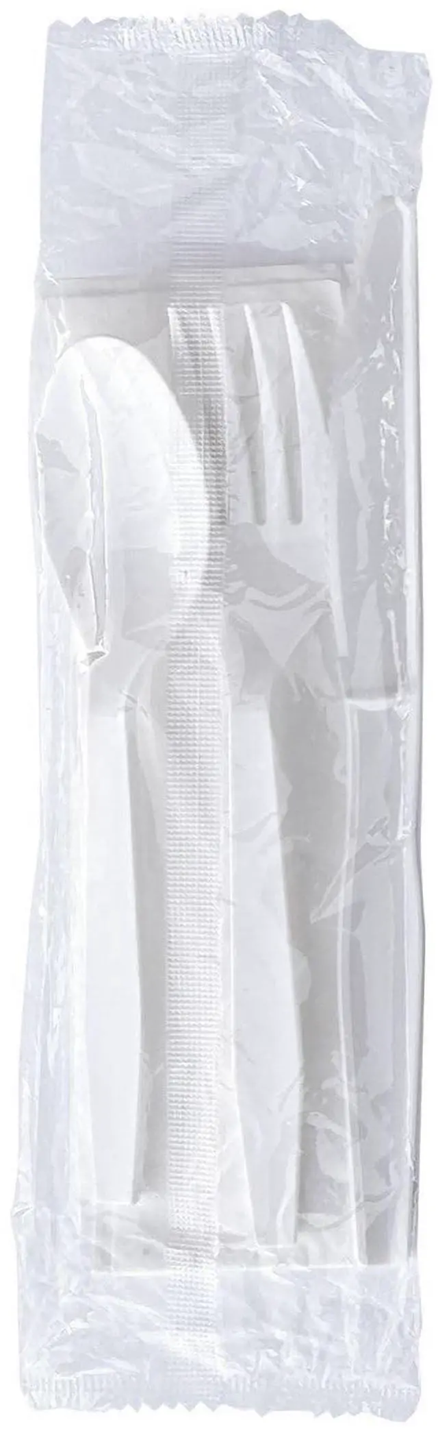 Four-Piece Polystyrene Cutlery Kit Mediumweight Fork/Knife/Napkin/Spoon Plastic White 250/Carton BWK4KITWHPS