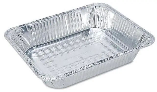 Boardwalk Aluminum Steam Table Pans are the perfect combination of strength, durability, functionality, and economy of aluminum foil without the hassle. Prepare, heat, refrigerate, ship, and serve warm to your guests in the same pan. More sanitary than permanent ware and less mess. Great for restaurants, catering, carry-out providers, parties, and special events. Economical and recyclable. Compatible with steam table pan lids, which are sold separately. Steam Table Part Type: Half-Size Deep Pan; Material(s): Aluminum; Color(s): Silver; Width: 10.38".