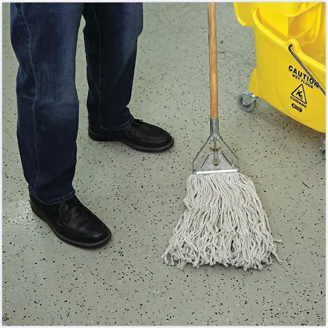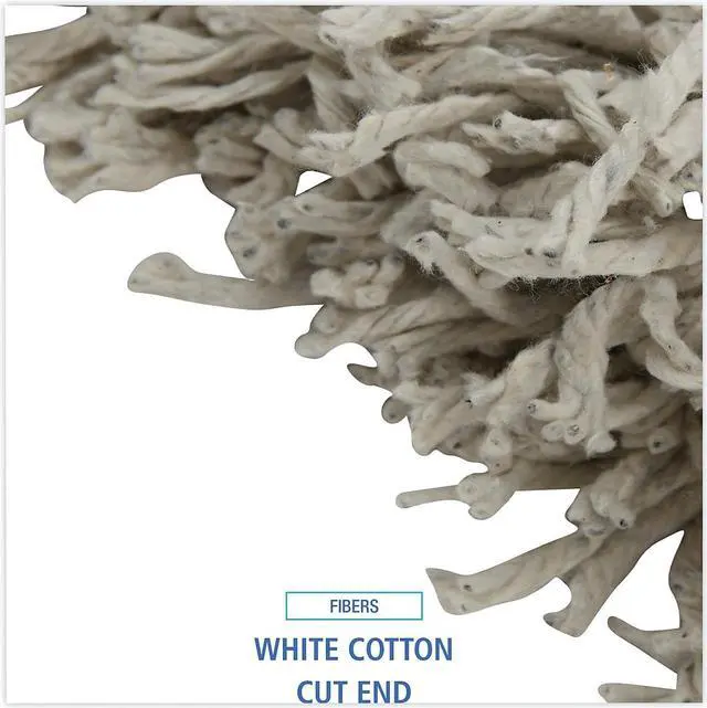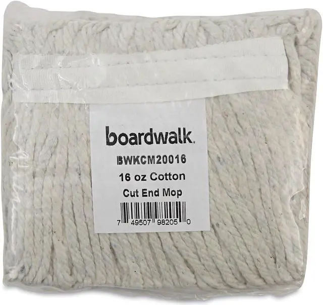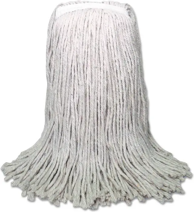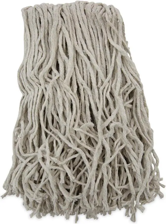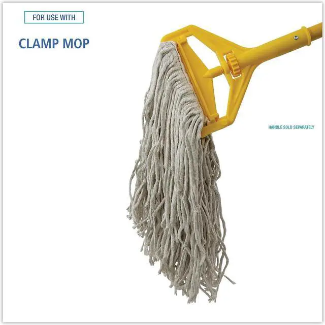 Ultra-absorbent white, natural cotton fiber is ideal for general mopping and all-purpose cleaning in any environment. Heavy-duty, 1.25" cotton headband adds to quality and durability. Soft enough to use on delicate floors, but strong enough to handle tough stains and cleaning products. For use with clamp style mop handle. Handle sold separately so you can customize your mop head size and replace when needed. Mop Head Type: Wet Mop; Application: Floors; Mop Head Style: Cotton Mop; Mop Head Size: 16 oz.