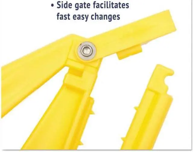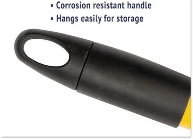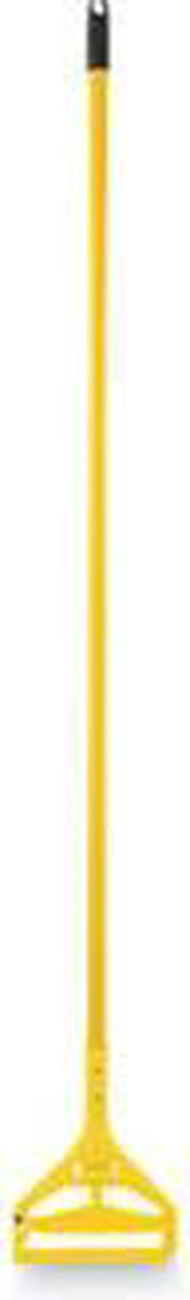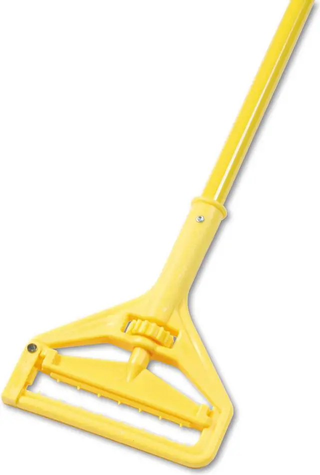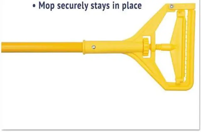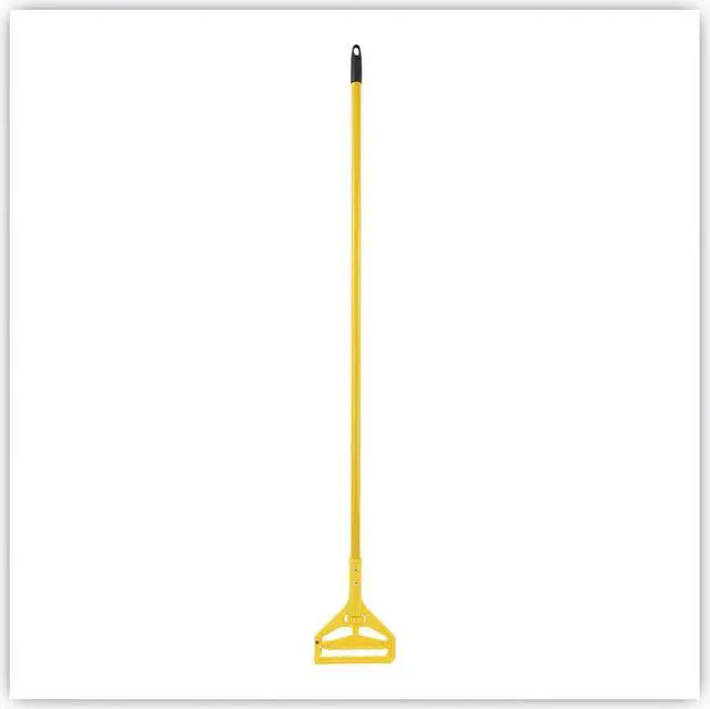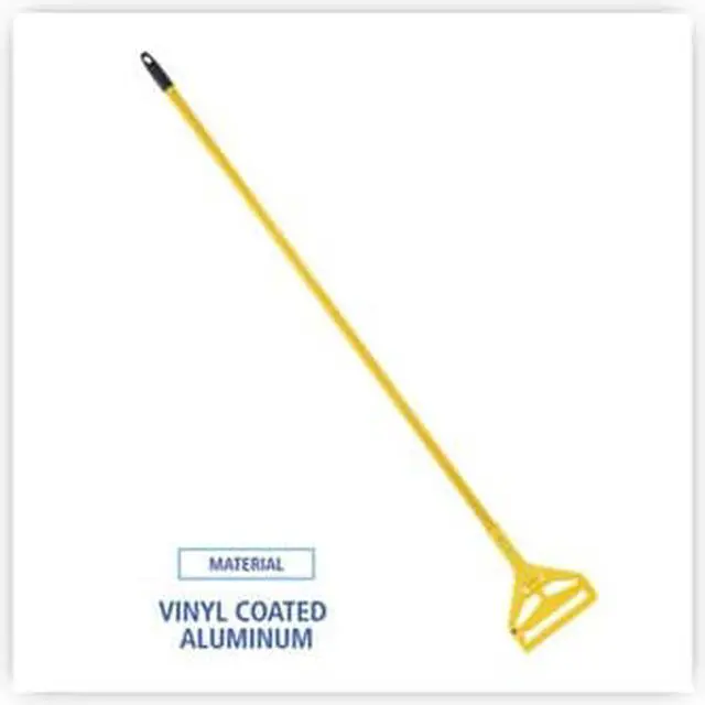 Boardwalk Plastic Head Quick Change Mop Handle is equipped with a hinged side latch with an adjustable roller knob. Quickly and easily loads most mop heads for convenient replacing. The vinyl-covered aluminum handle with smooth grip is ideal for regular use with or without gloves in any environment. Strong and reliable, the coated finish is easily wiped clean and repels dust and water. Loophole is the top can be used for hanging. Handle Length: 60"; Handle Diameter: 1"; Handle Material(s): Aluminum; Color(s): Yellow.
