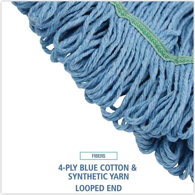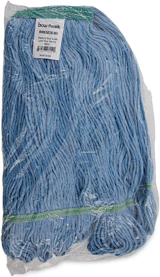 Boardwalk Super Loop Wet Mop Heads are created from premium-quality, four-ply cotton/synthetic yarn for maximum absorbency. The industrial strength mop head is designed for high-volume use. Each head absorbs up to seven times its own weight in liquid. Constructed to be more durable with heavy-duty, vinyl headbands. Machine washable. Launder in mesh bag. Use with clamp or spring grip-style handles, which are sold separately. 1" Headband. Mop Head Type: Wet Mop; Application: Floor Maintenance; Mop Head Style: Looped End; Mop Head Size: Medium.