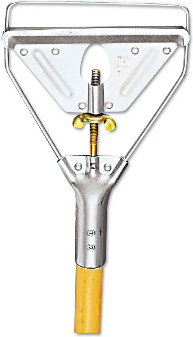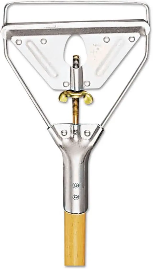Boardwalk Screw Clamp Metal Head Mop Handle is a quality wood mop handle thats designed to be sturdy. The double-riveted metal clamp is securely fastened to the handle for extra strength. Made from solid wood and slightly lacquered for an easy, smooth finish that resists water and splintering. Wing-nut screw adjust to fit the size of the mop head, which is sold separately. Handle Length: 62"; Handle Diameter: 1.13"; Handle Material: Wood.