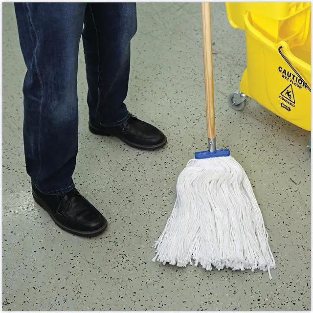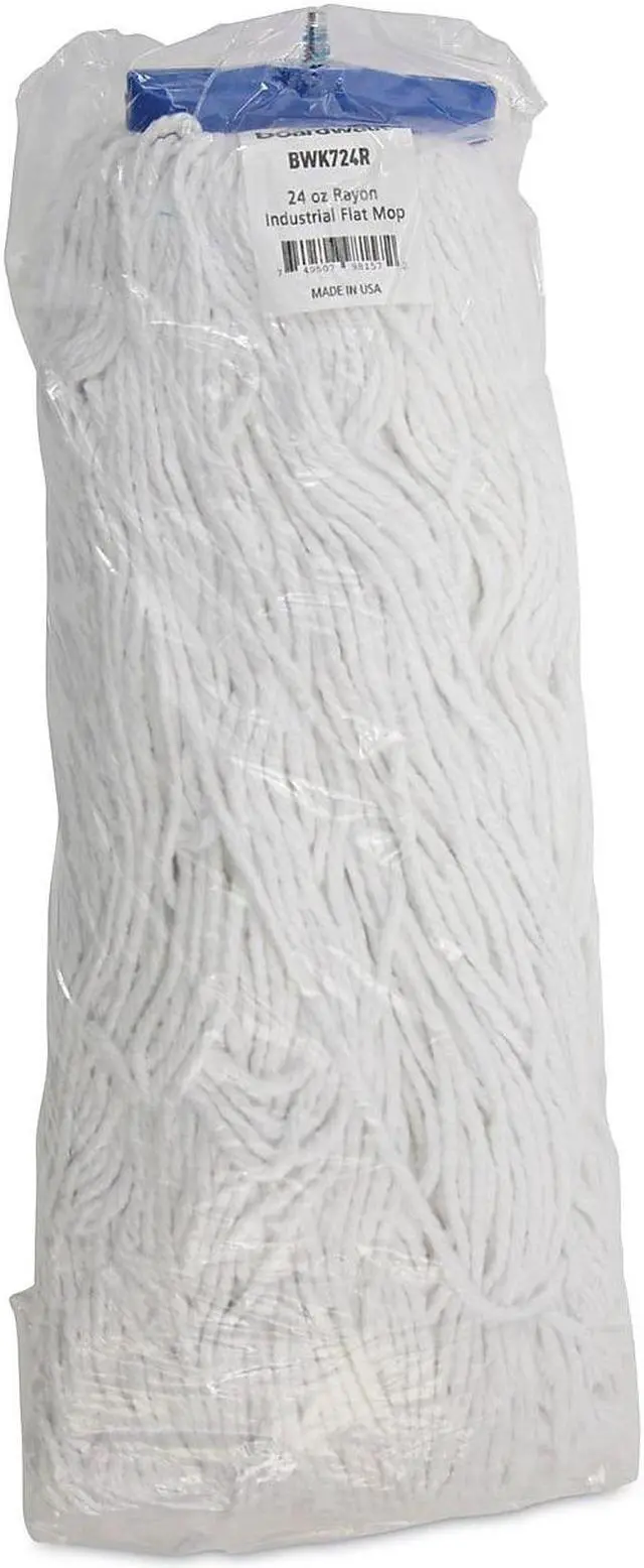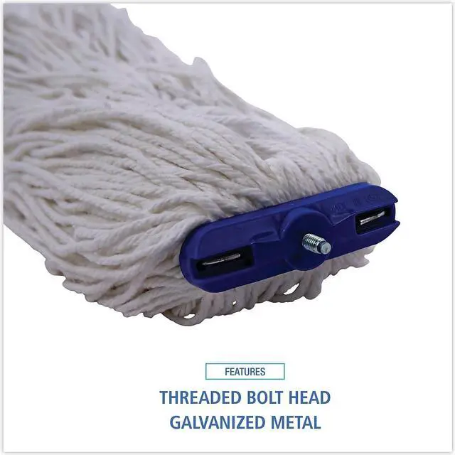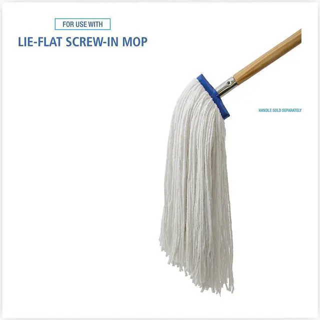 Boardwalk Cut-End Lie-Flat Economical Mop Head is constructed with premium, four-ply yarn for added absorbency. Built with a standard 1/4" threaded bolt head for easy screw-in mop head change. The mop heads are held together and wrapped with a galvanized metal outerband for the utmost in durability. The mop lies flat on floor and is designed for use with a lie-flat screw-in mop handle, which is sold separately. Mop Head Type: Wet Mop; Application: Floors; Mop Head Style: Cut End; Mop Head Size: 24 oz.