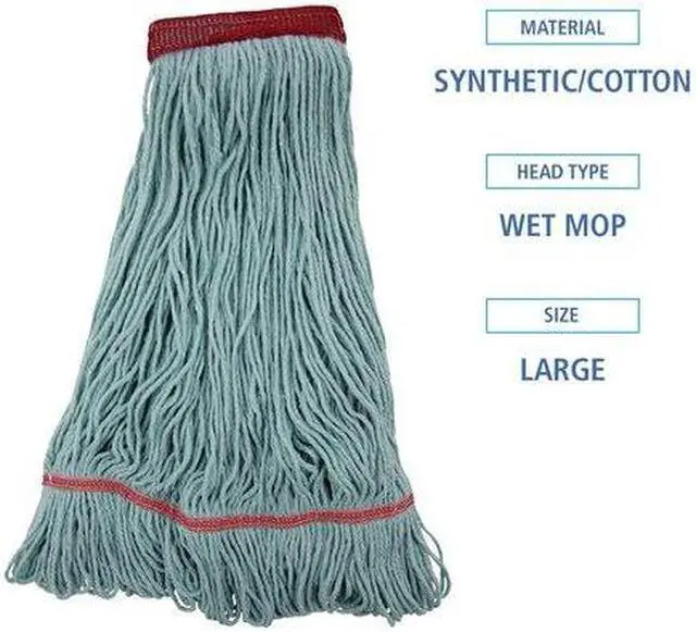 Boardwalk EcoMop is a quality mop head with looped-end construction. Built with a thick and durable tailband that provides longevity and excellent laundering performance. Constructed from high-quality synthetic content that is designed to increase abrasion resistance. A single mop head absorbs more than four times its weight in water. The 4-ply synthetic and cotton fibers shed less lint. No post-recycling dyes. Mop Head Type: Wet Mop; Application: Floors; Mop Head Style: Looped End; Mop Head Size: Large.
