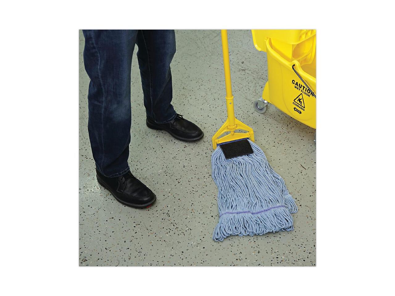 Good quality, economical, four-ply blend of cotton and synthetic fibers is an excellent choice for foodservice areas. Durable, double-sewn tailband. Mop head style: Looped end....