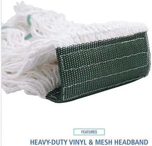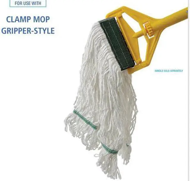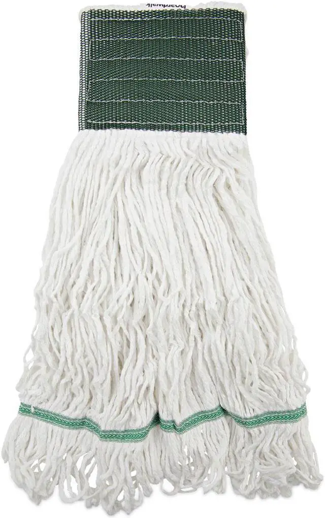 Boardwalk Saddleback Loop-End Wet Mop Heads are constructed from standard, four-ply, natural yarn for a quality mop head. The looped end design sheds less lint, reduces fraying and unraveling. The durable, double-sewn tailband prevents tangles and provides more floor coverage on a variety of floor types. The heavy-duty, five-inch, vinyl mesh headband securely holds full-weight, premium fiber strands. Designed for use with clamp-style or gripper-style mop handle, which is sold separately. Mop Head Type: Wet Mop; Application: Floors; Mop Head Style: Looped End; Mop Head Size: Medium.