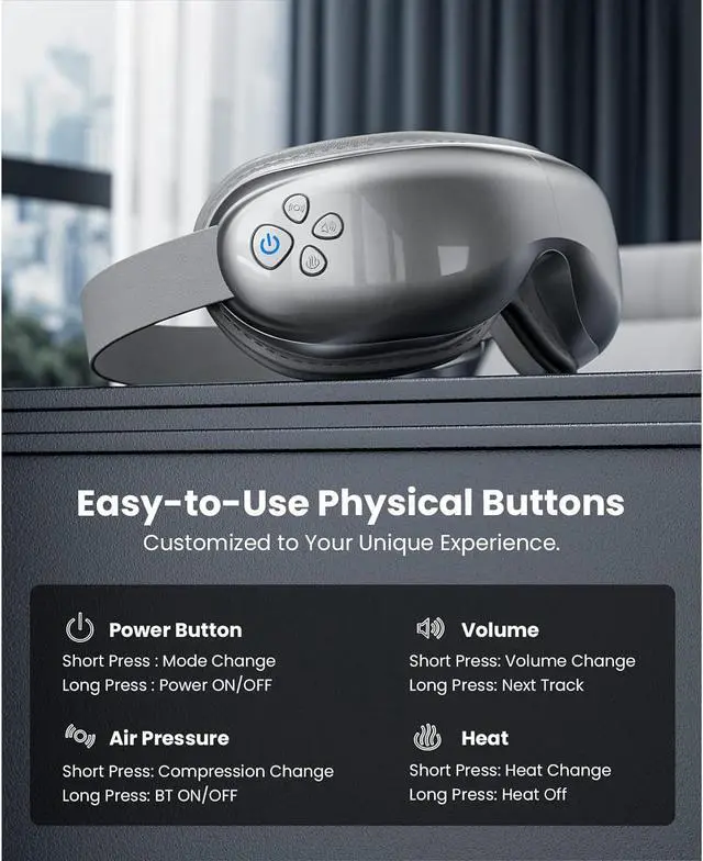 4. Indulge in Maximum Comfort with Custom Settings - Experience the ultimate comfort and relaxation with our adjustable 3-level compression and 2-level heat settings. Choose from soft, moderate, or strong compression intensity to suit your needs. You can also enjoy the soothing warmth of 104(Low Heat) for a gentle effect or go for a deeper heat of 113 (High Heat) to help improve blood circulation, reduce eye fatigue, and encourage a sense of calm and tranquility