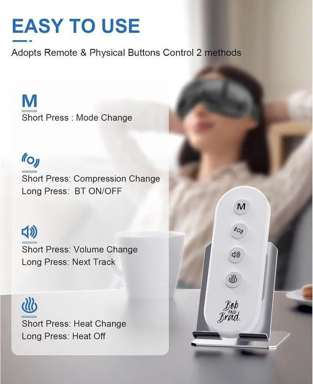 1. Smart Eye Mask for Relieving Stress and Migraine - Developed by famous US PTs Bob and Brad brings natural way to relieve anxiety and dry eyes. The EyeOasis 2 Plus heated eye massager combines heat, pressure and gentle acupressure with an upgraded elongated design to deliver optimum relaxation and relieve from eye strain, stress, migraine and headache pain. Notice: We do not recommend use of eye massagers for customers who have undergone eye operation, retina condition, cataract, glaucoma, etc