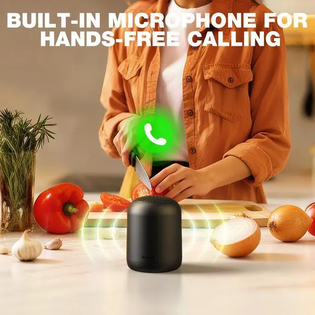 With built-in HD microphone, this portable bluetooth mini speaker frees your hand when cooking, driving, exerciseing or meeting