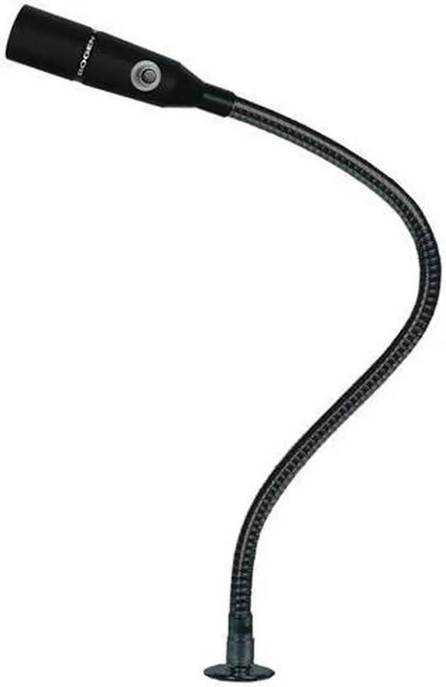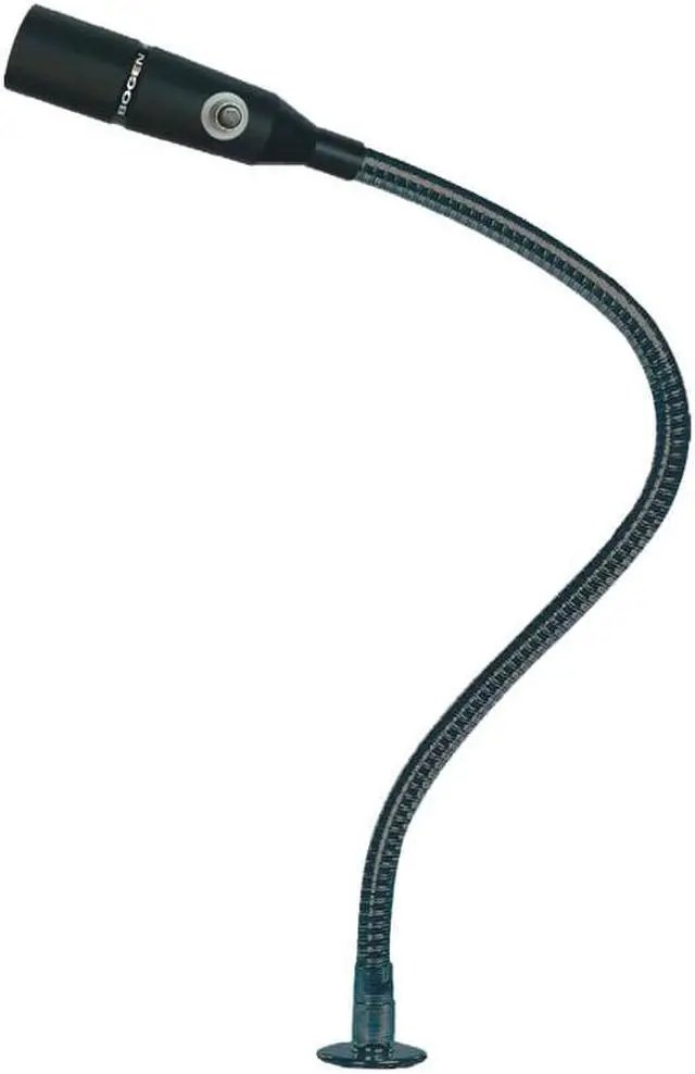 The Bogen Model MGN19 is a push-button, omni-directional, dynamic microphone designedfor quality sound installations. The microphone is extremely rugged and reliable and isdesigned to stand up under the most strenuous handling conditions to provide years of dependable service. A smooth wide band frequency response with a slight intentional "presence" boost at 2000 Hz gives a natural, crisp, highly intelligible sound. The microphone is furnished with a 18.75" fully flexible gooseneck mounting flange.