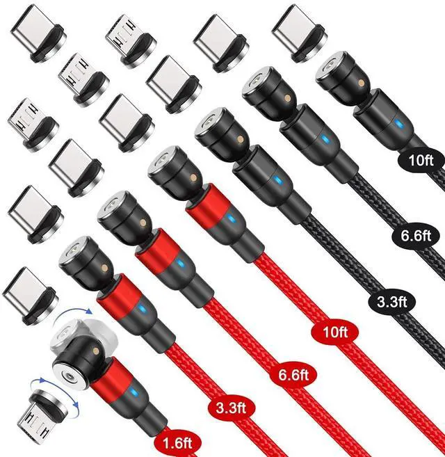 3.Convenient Multi-Length Pack,7-Pack Multi-Length Set, Including 1.6ft/3.3ft/6.3ft/10ft. 180° and 360° rotating design make charging more convenient while you are playing phone games or chatting.