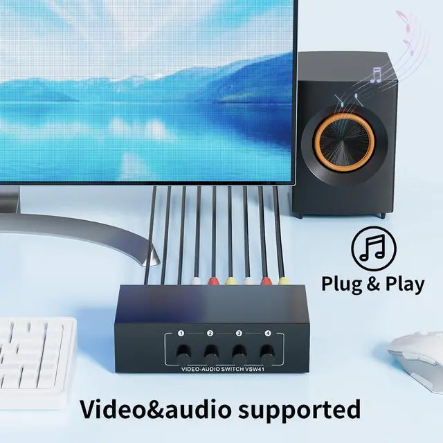 This 4 in 1 out composite RCA AV Switch is recommended for use with TV only.
