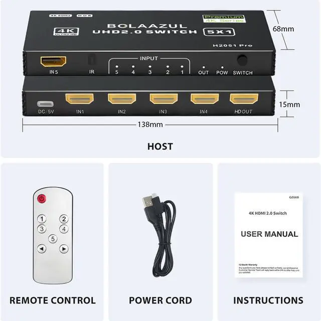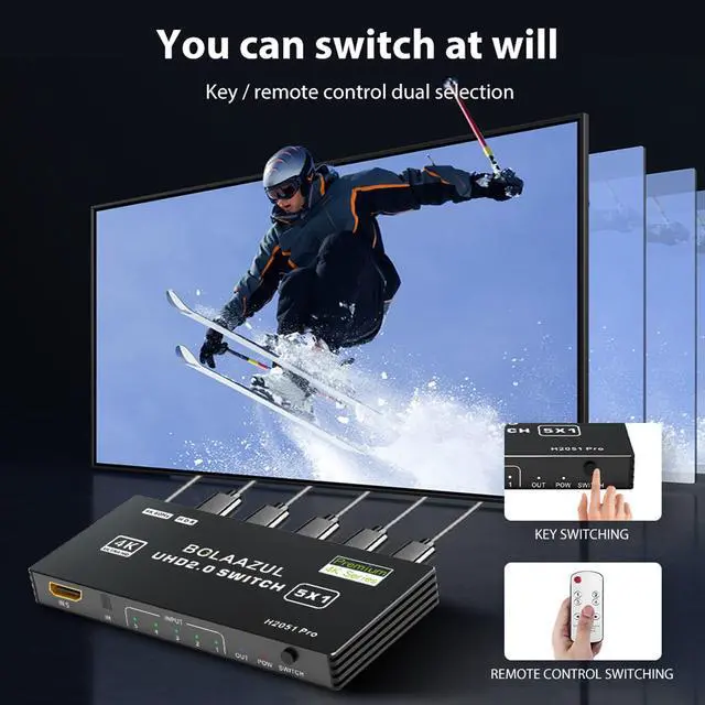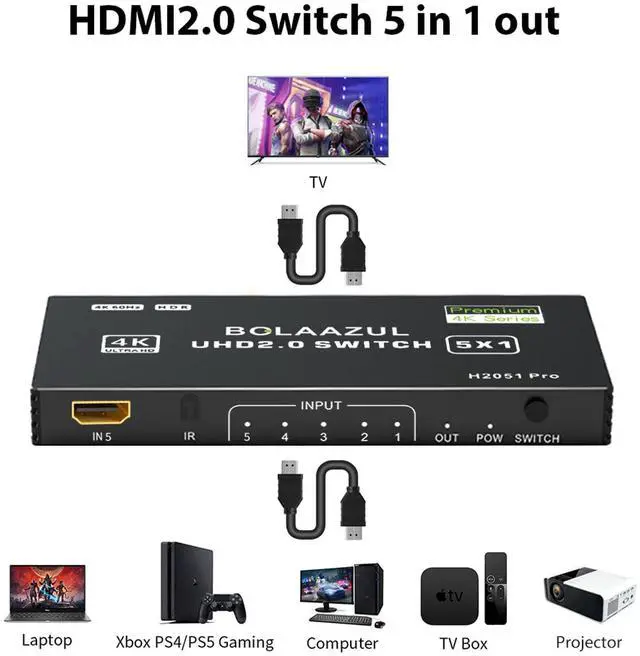 - Connects multiple HDMI video inputs(1-5) and 1 HDMI video output