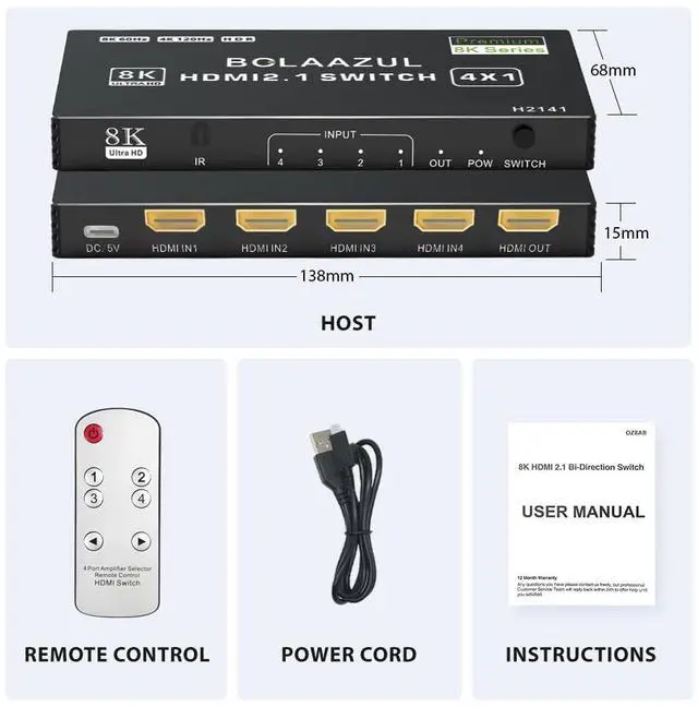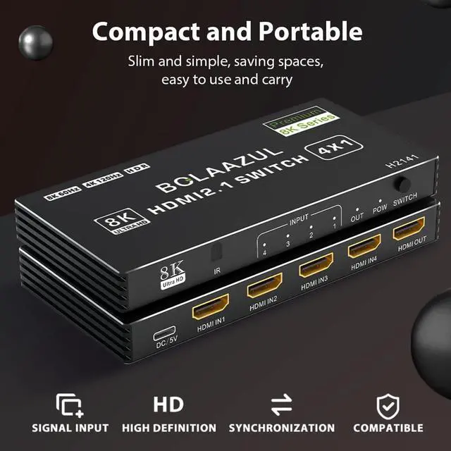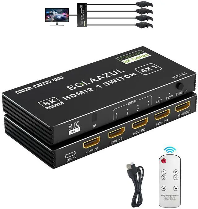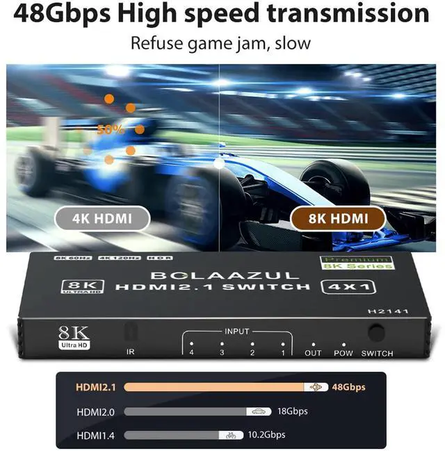 4 IN 1 OUT HDMI 2.1 SWITCH 4K@120Hz 8K@60Hz 2K@144Hz