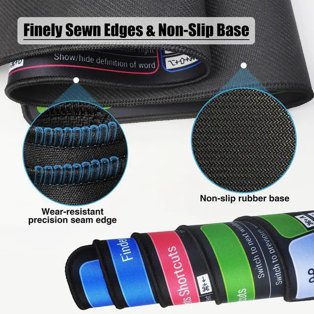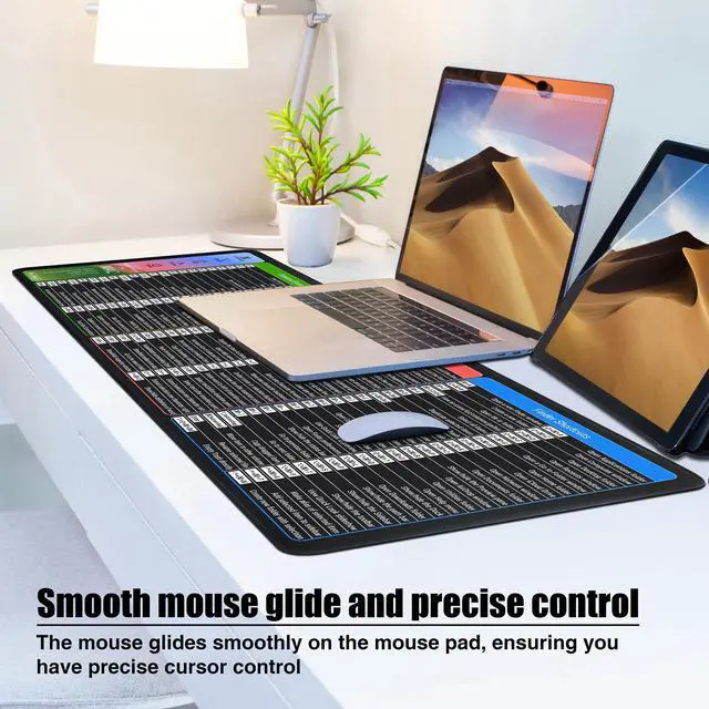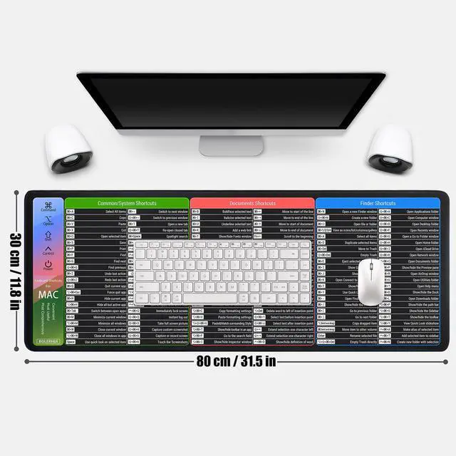 Mac Shortcuts Cheat Sheet Mouse Pad, Large macOS Keyboard Shortcut Desk Mat, Non-Slip Rubber Base, Sewn Edges, Washable, XL 31.5" x 11.8" x 0.12"
