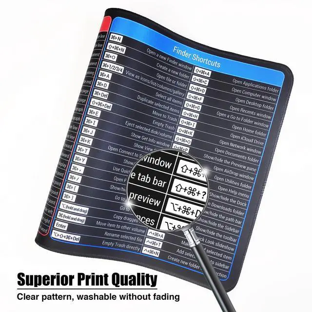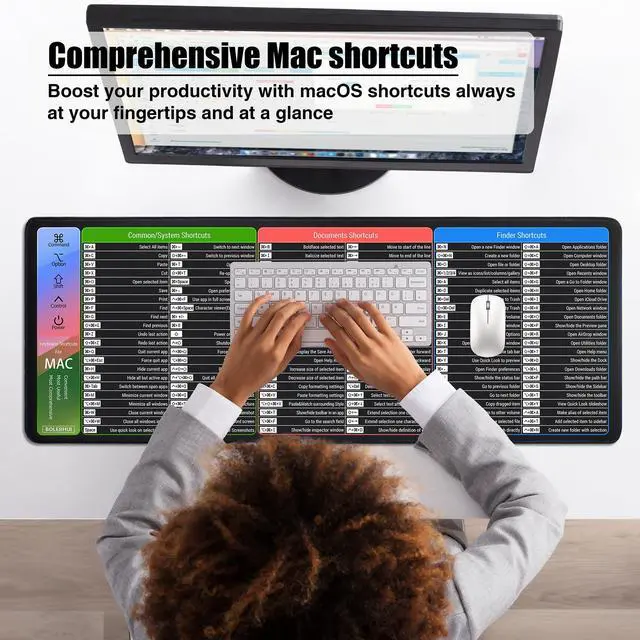 Mac Cheat SheetDesigned for macbook/imac users, this mousepad provides the most useful and comprehensive macOS shortcuts, it's easy to read, and when you need a shortcut, it's right at your fingertips, which can greatly improve your productivity