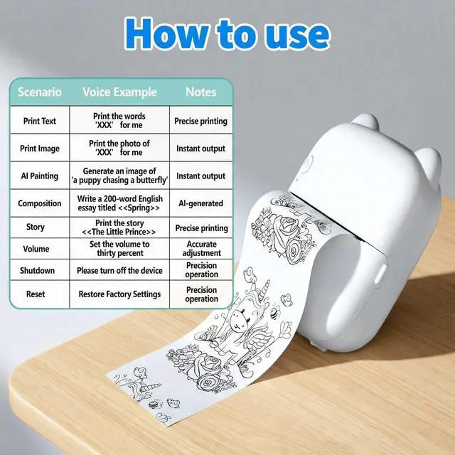 Revolutionary AI Interaction & Voice Control:Experience the future with our AI Mini Printer featuring advanced voice control. Beyond a simple thermal printer, it acts as an AI Intelligent Encyclopedia. Switch between multiple AI personas to customize the tone and style of interaction, from a helpful tutor to a playful companion. Perfect for voice-to-print tasks, asking questions, or generating creative content hands-free
