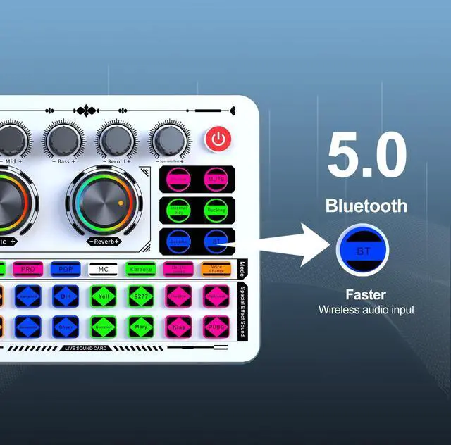F999 USB sound card contains almost all commonly used functions. The audio mixer not only suitable for gaming, recording, podcasting, and live broadcasting, but also friendly to beginners.