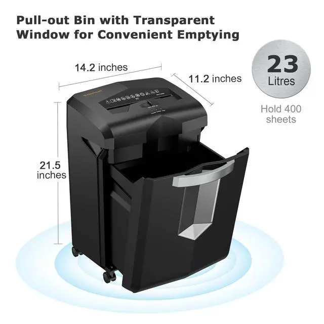This office shredder is equipped with an ultra-durable automatic anti-jam system. Advanced jam detection stops the machine when over-loading to prevent the jam once happening.