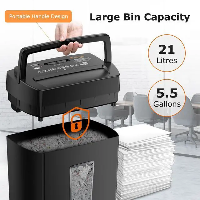 P-4 security level cross-cut technology destroys sensitive documents into unrecoverable 13/64*51/64 inch particles
