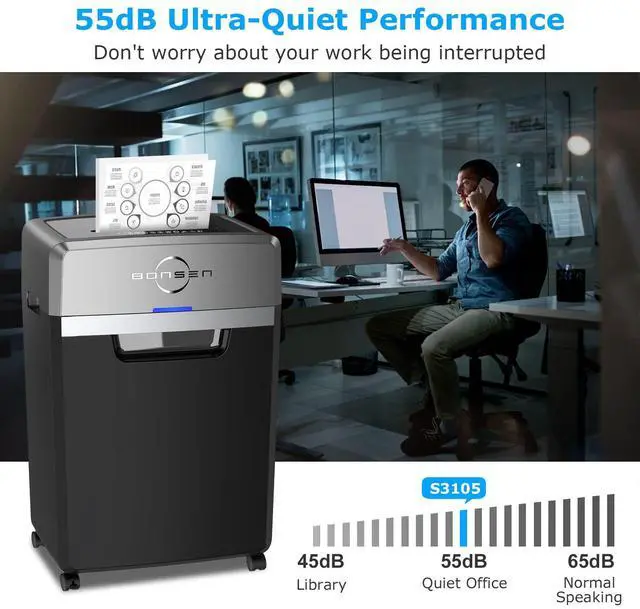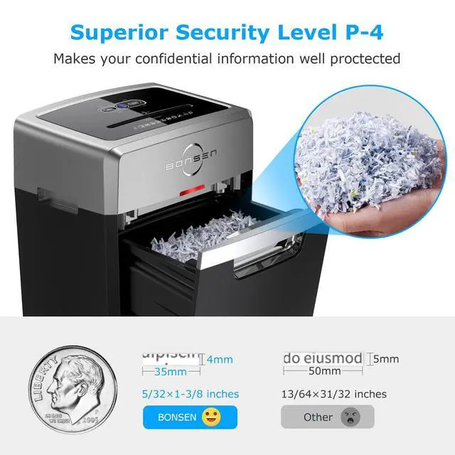 BONSEN S3105 provides powerful shredding for credit cards, staples, clips, CDs, ATM receipts, pay stubs, and other confidential documents, meeting your daily needs.