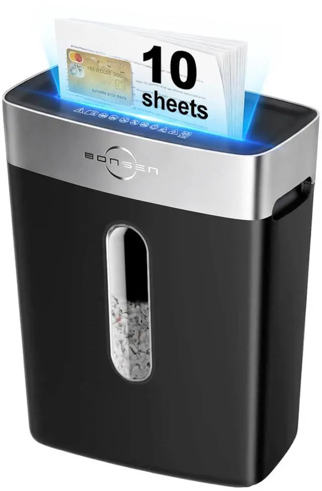 BONSEN 10-Sheet Anti-Jam Cross-Cut Paper Shredder S3201