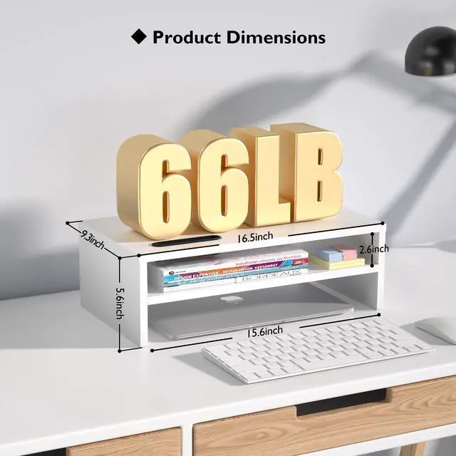 The monitor shelf provides enough area for storing laptops, keyboards, wireless mice, and daily necessities to keep your desktop tidy.