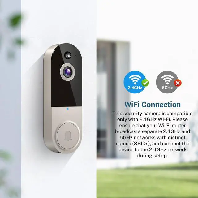 (1) The doorbell camera only works with 2.4GHz Wi-fi. Please connect it to a 2.4GHz network.