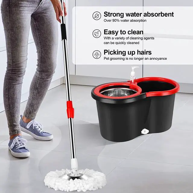 3 Replacement Mop Refills~~The spin mops with bucket and foot pedal come with 3 machine washable and reusable microfiber replacement mop refills that help you remove stubborn dirt.