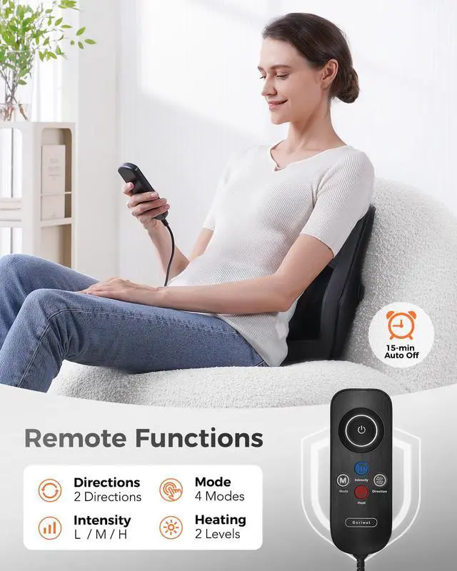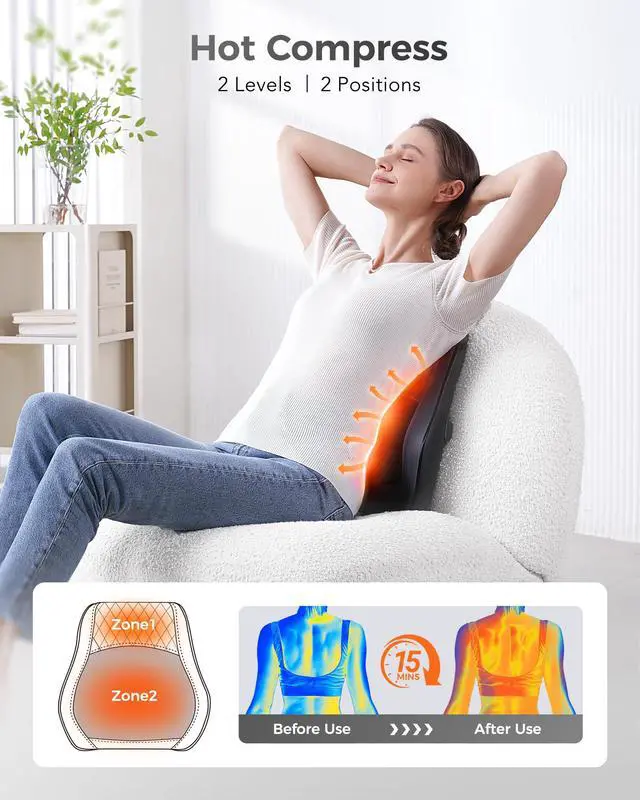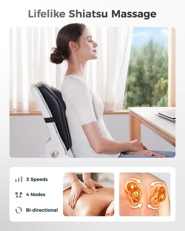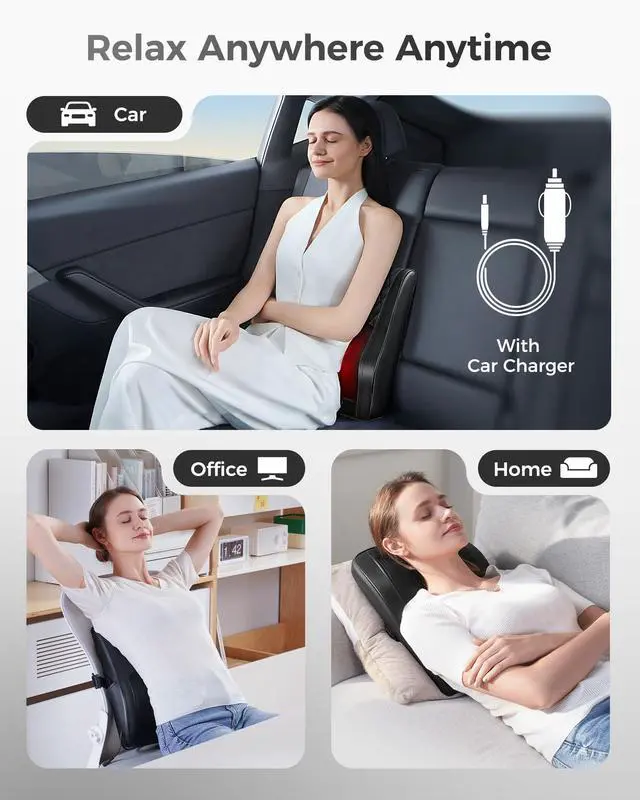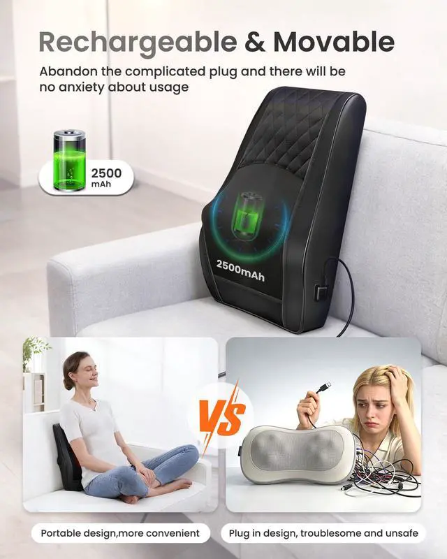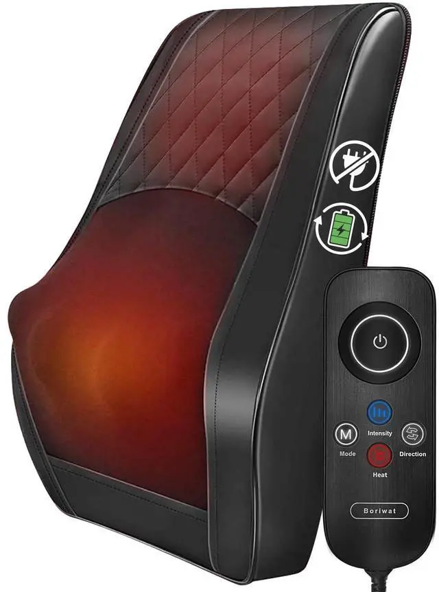 Shiatsu Back Massager for Pain Relief Deep Tissue-Movable Electric Neck Back Massager with Heat- Rechargeable Massage Heated Lower Back Massage for Office/Home/Car-Christmas Gift for Men Women