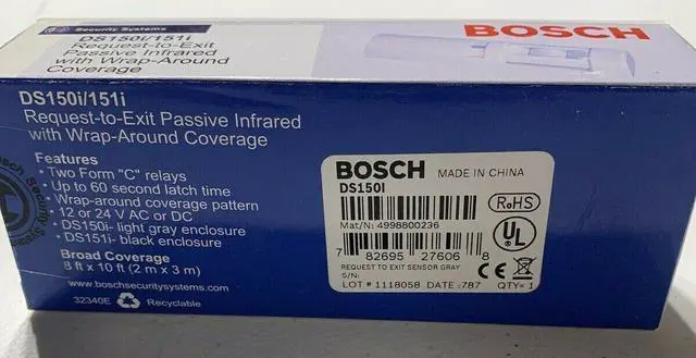 The DS150i Series Request to Exit Detector provides PIR 2.4 m x 3m (8 Ft. x 10 Ft. ) coverage. Features include single or double door use, wall or ceiling mountable, internal vertical pointability, wrap around coverage pattern, selectable relay trigger mode and selectable fail safe or fail secure modes.