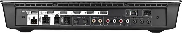 Rear panel of the console 1 HDMI output with Audio Return Channel (ARC) 5 HDMI inputs 2 optical digital audio connections 2 coaxial digital audio connections 2 analog L/R audio inputs 1 3.5 mm connection for the Acoustimass module 1 data port 1 IR repeater port 1 Ethernet port for SoundTouch and software updates via a network 1 USB connection for software updates only