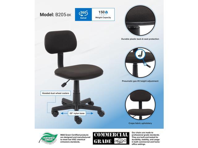 Boss Office Products Fabric Steno Chair in Black, Low-Back (B205-BK)