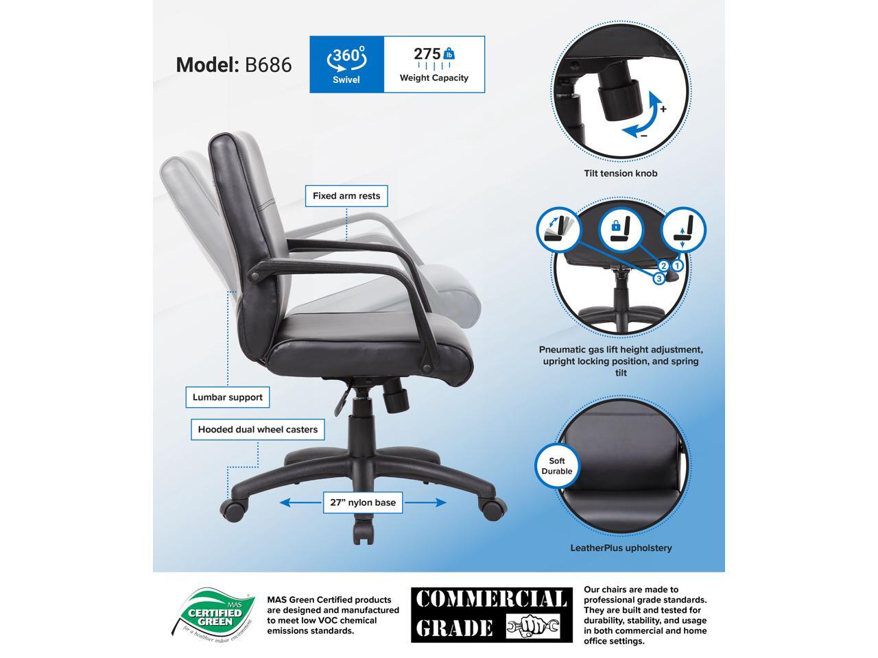 BOSS Mid Back Executive Chair In LeatherPlus (B686)