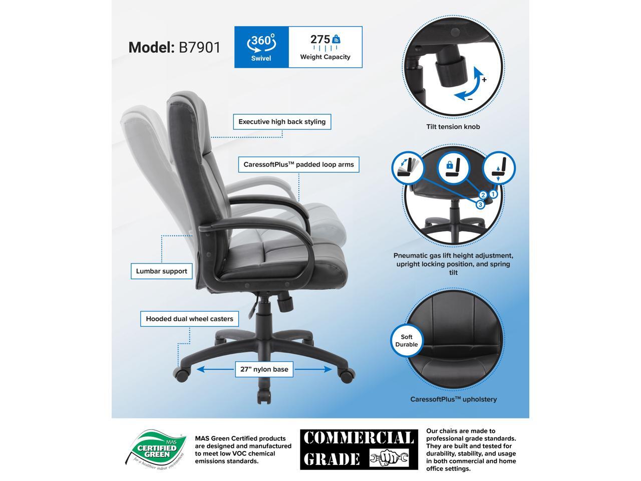 - This executive high back chair is elegantly upholstered with extremely soft and durable Caressoftplus Vinyl