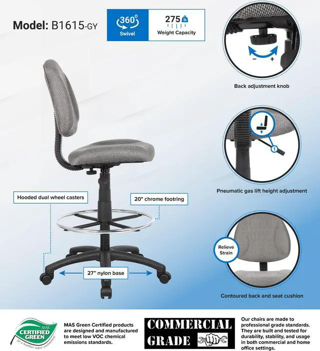 Boss Office Products B1615-BK Boss Drafting Stool with Footring