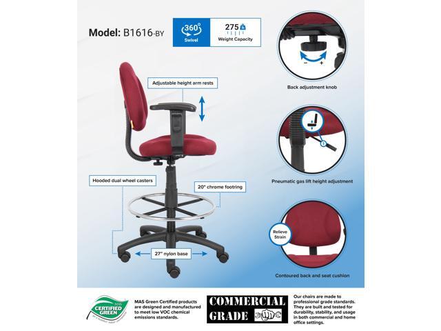 BOSS Burgundy Tweed Drafting Stool W/ Adjustable Arm and Removable Footrest (B1616-BY)