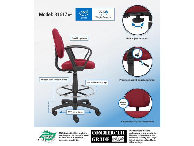 BOSS Burgundy Ergonomic Works Adjustable Drafting Chair W/Loop Arms and Removable Foot Rest (B1617-BY)