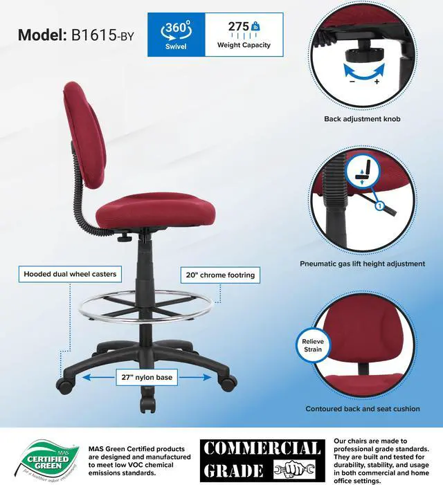 Boss Office Products B1615-BK Boss Drafting Stool with Footring