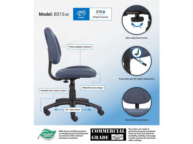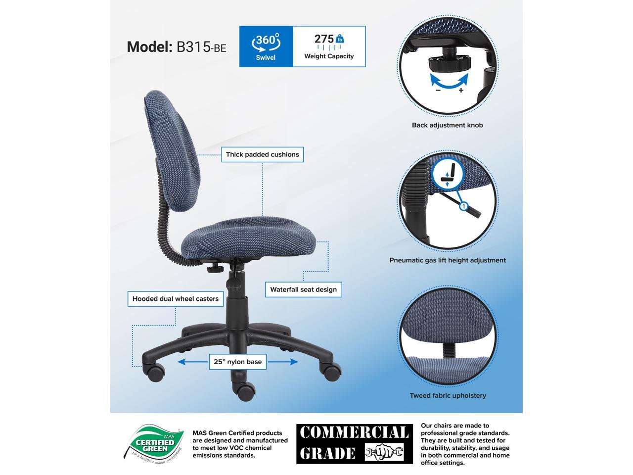 BOSS Blue Perfect Posture Deluxe Office Task Chair without Arms (B315-BE)