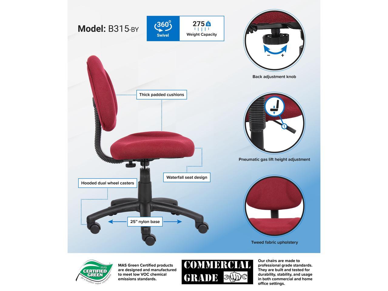 BOSS Burgundy Perfect Posture Deluxe Office Task Chair without Arms (B315-BY)