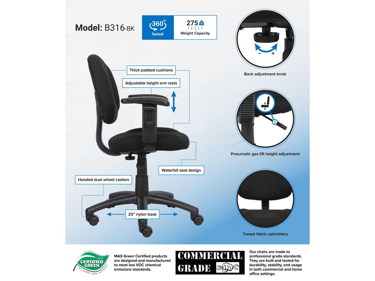 BOSS Black Perfect Posture Deluxe Office Task Chair with Adjustable Arms (B316-BK)